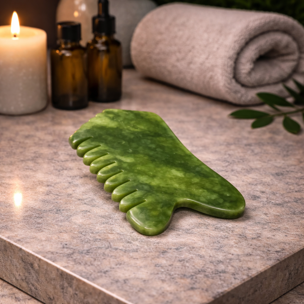 The 10cm Jade Comb with Teeth is a refined scalp ritual tool, hand carved from authentic jade to deliver both beauty and performance. Designed for head spa treatments, salon services and elevated wellness routines, this elegant comb gently stimulates the scalp to encourage circulation, release tension and promote a sense of deep relaxation.